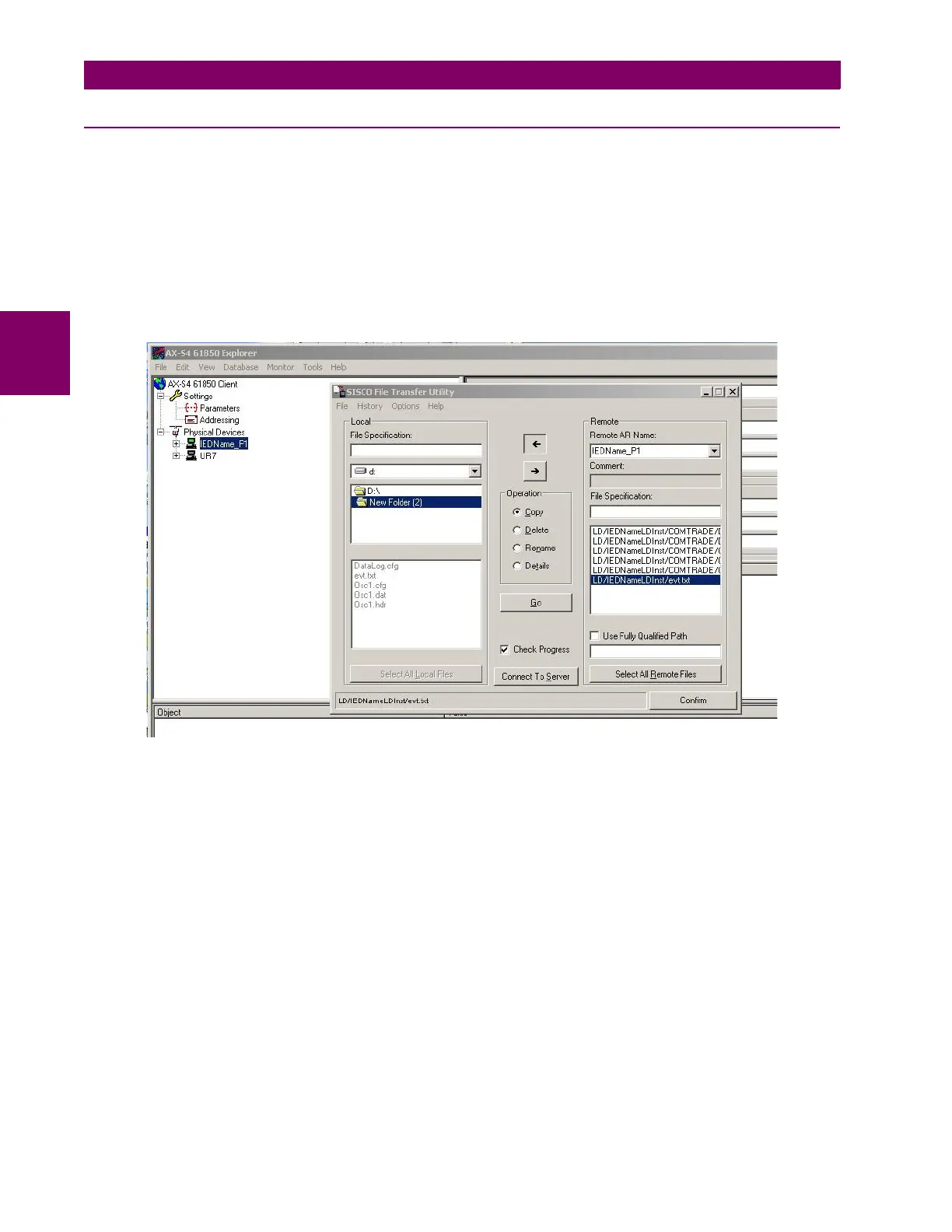 The T60 supports file transfer by IEC 61850. The approach is as follows, using the SISCO AX-S4 61850 client software as