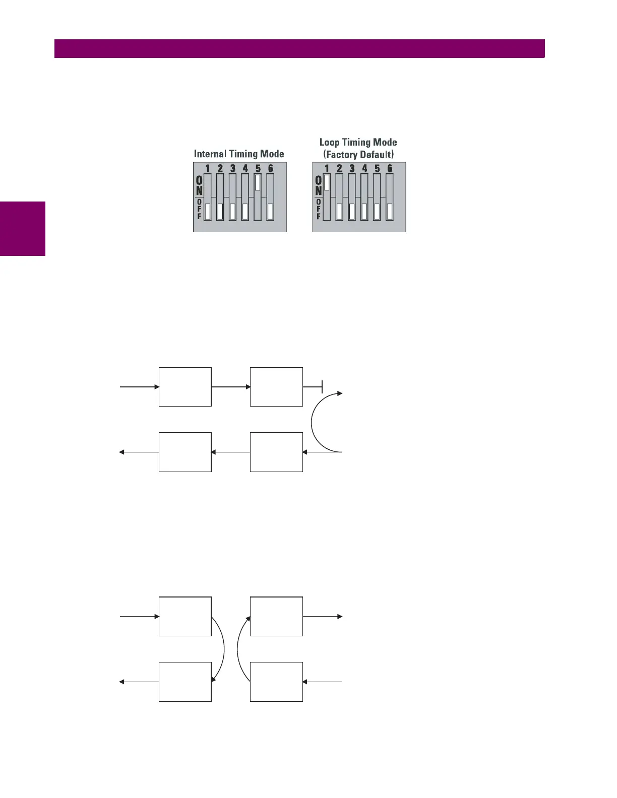 to-multiplexer, factory defaults), set to octet timing (S1 = ON) and set timing mode to loop timing (S5 = OFF and S6 =