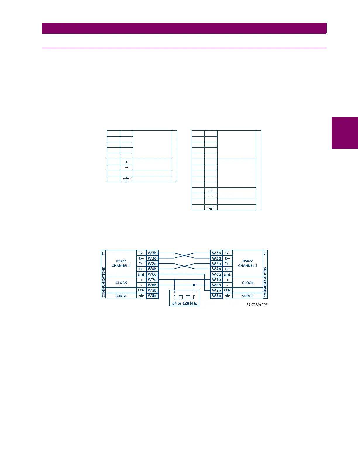 certain criteria must be followed since there is one clock input for the two RS422 channels. The system will function cor-