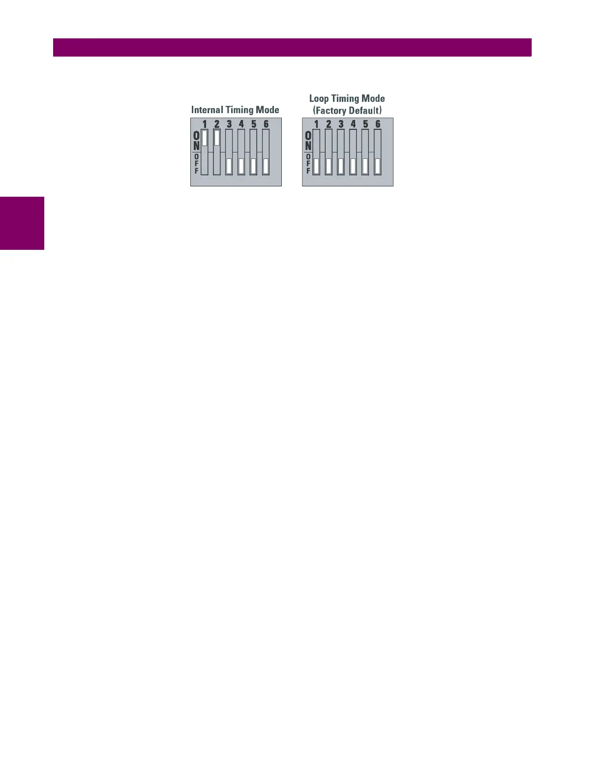 For the looped timing mode, the system clock is derived from the received line signal. Therefore, the timing selection
