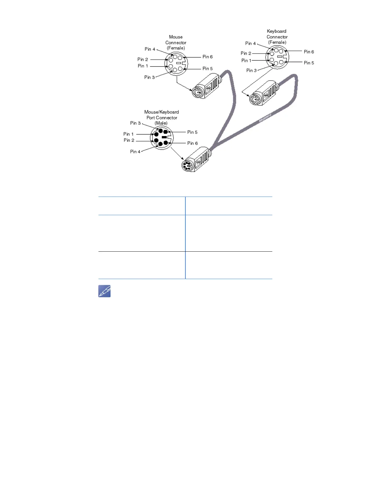 Table A-20 Mouse/Keyboard Splitter Cable Pinout
