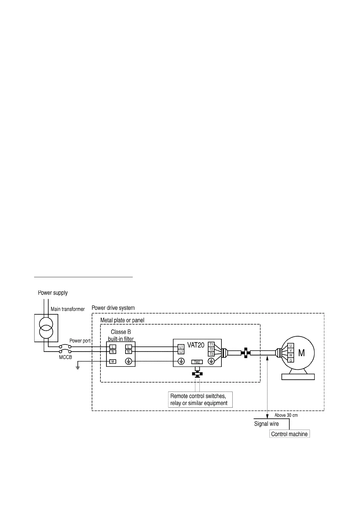 between motor and drive, this wiring should be away from control wiring for more than 30 cm.