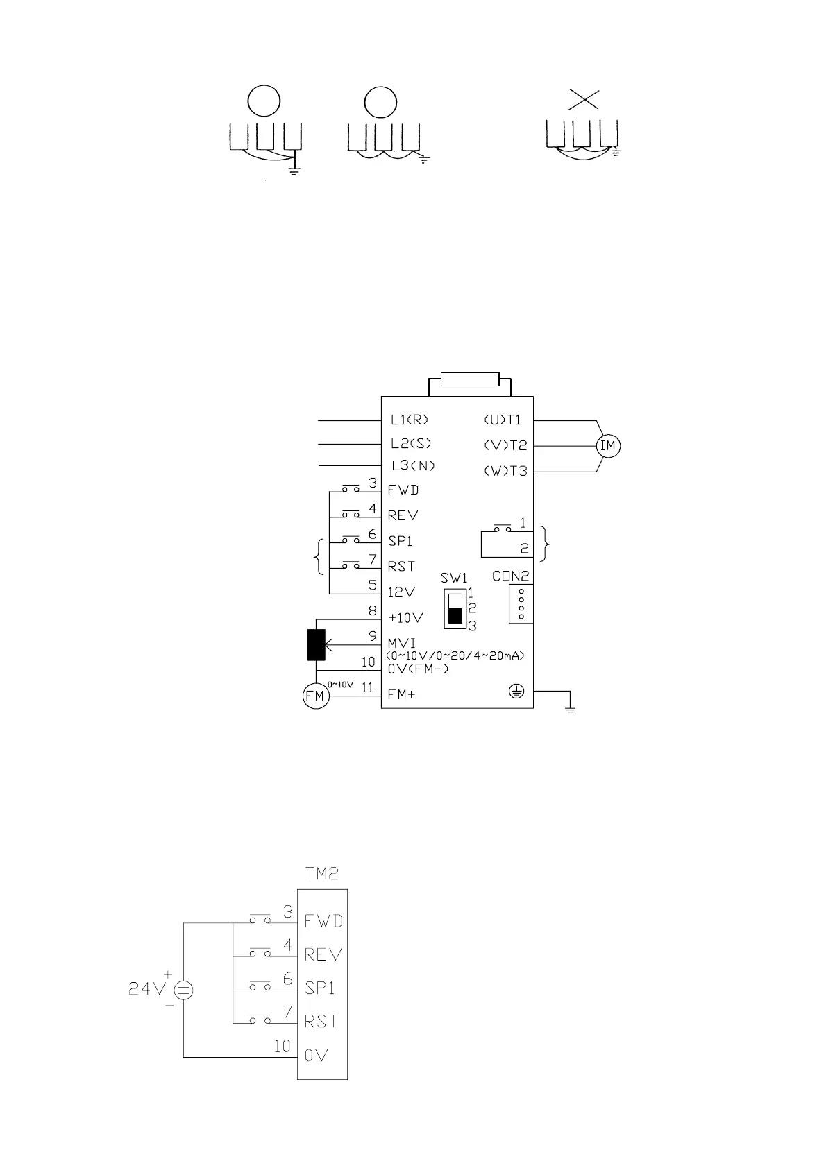 l Grounding circuitry must not be formed when grounding several inverters together.