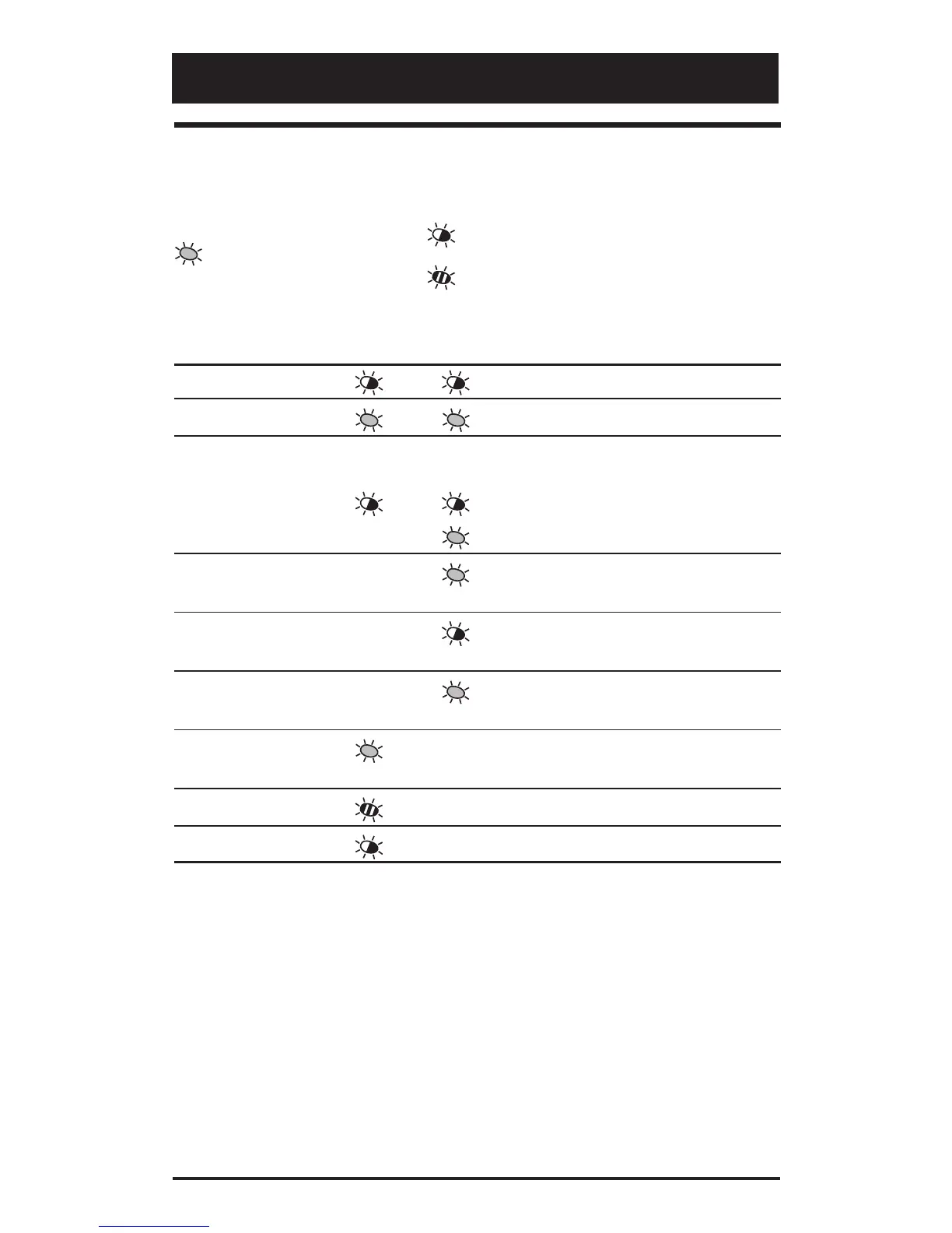 = Continuously On = Normal blinking (1 Hz)
