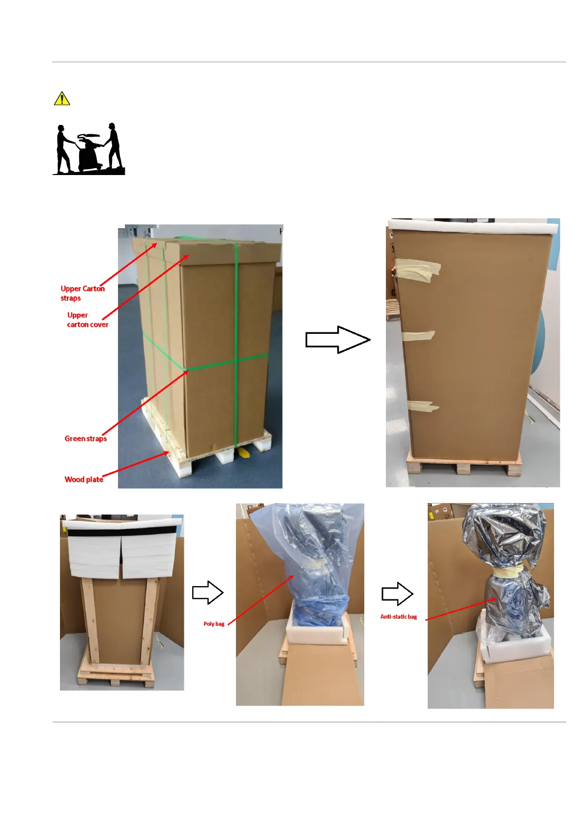 Two people are required whenever a part weighing 16 KG (35 LBS) or more must be lifted