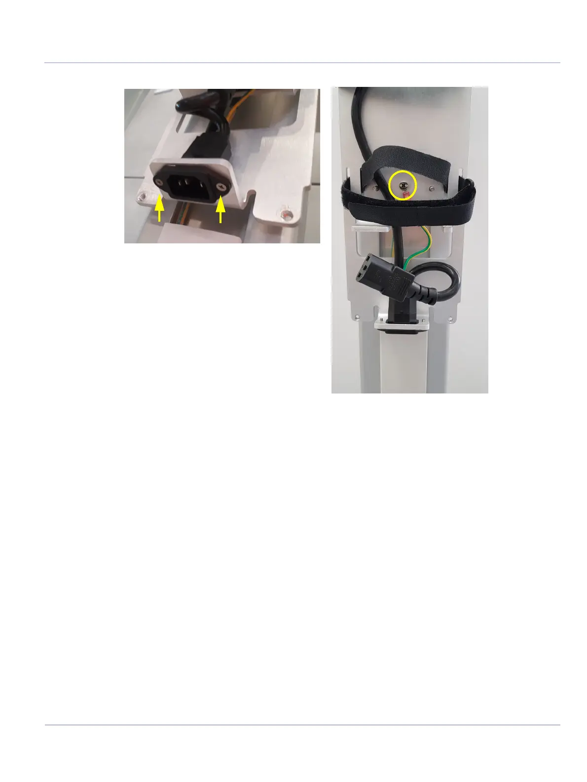 2) Connect the split cable to its position using 2 screws, and connect the ground cable.