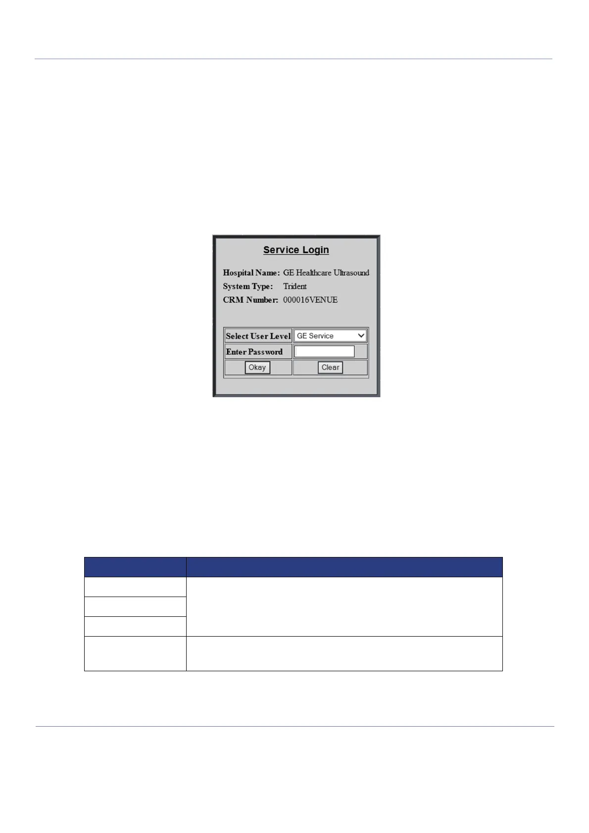 NOTE: For a GE Field Engineer, the password changes at specific intervals. Access with the password