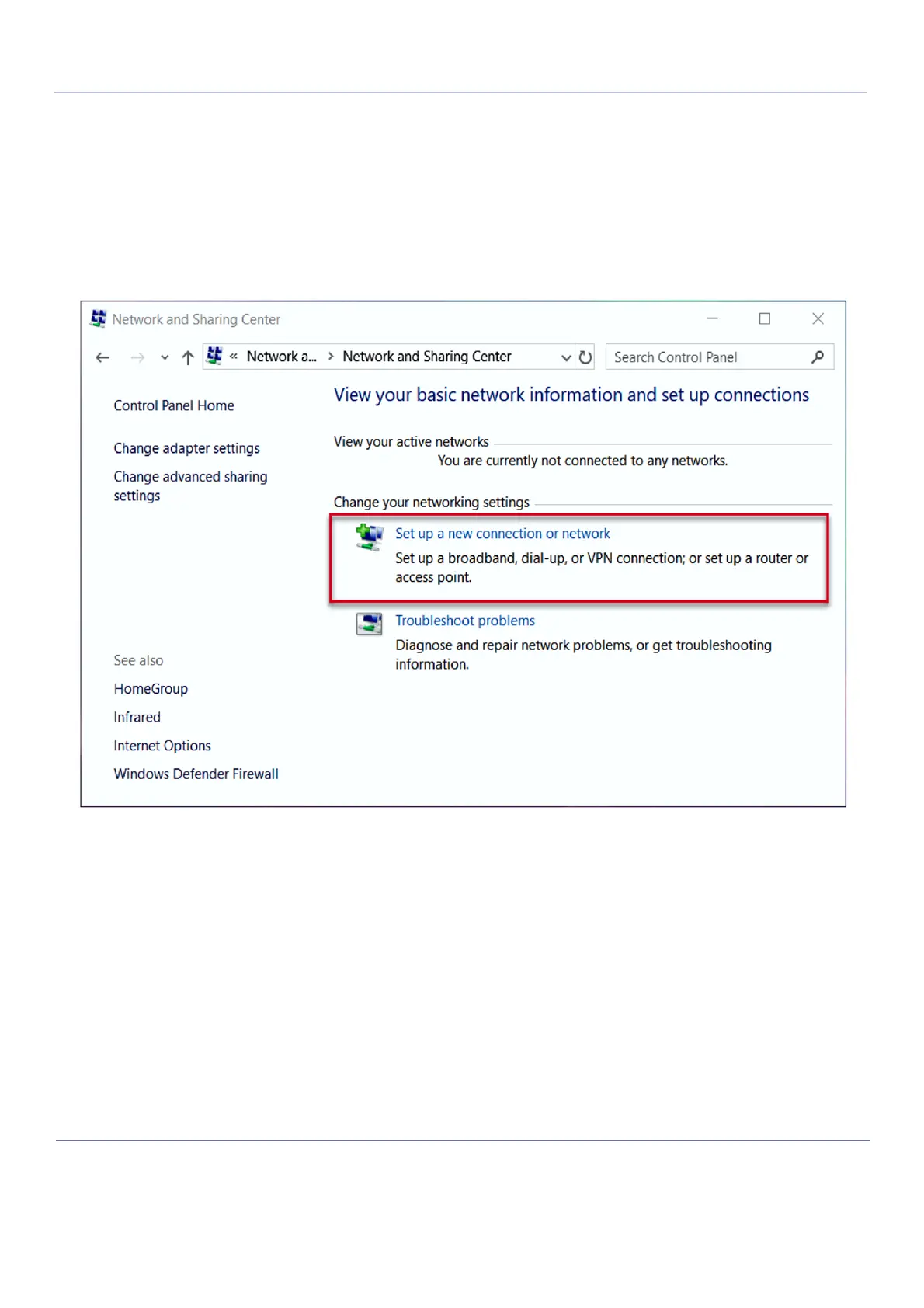 5.) Click or tap the following link: Set up a new connection or network.