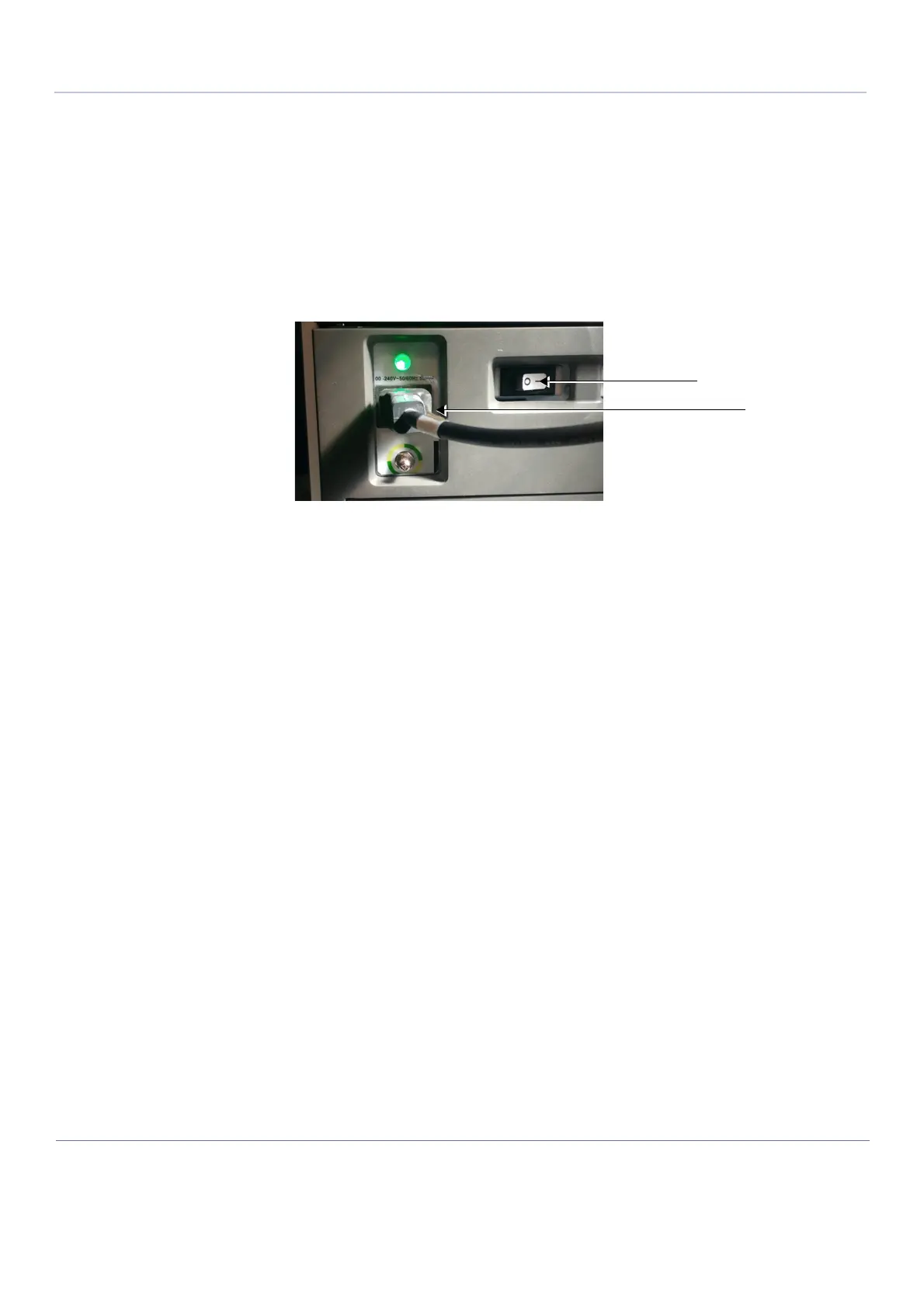4) Verify that the on-site mains voltage is within the limits indicated on the rating label on the rear of
