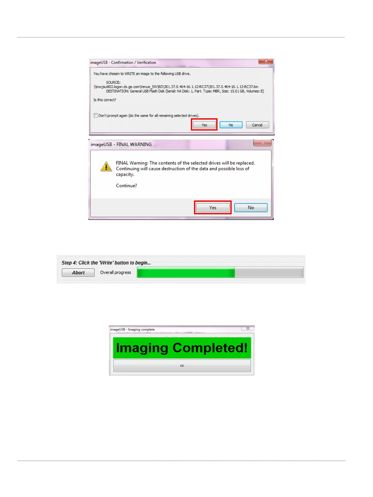 Figure 8-212 Disk-on-Key Burn Process - Confirmation and Warning Messages