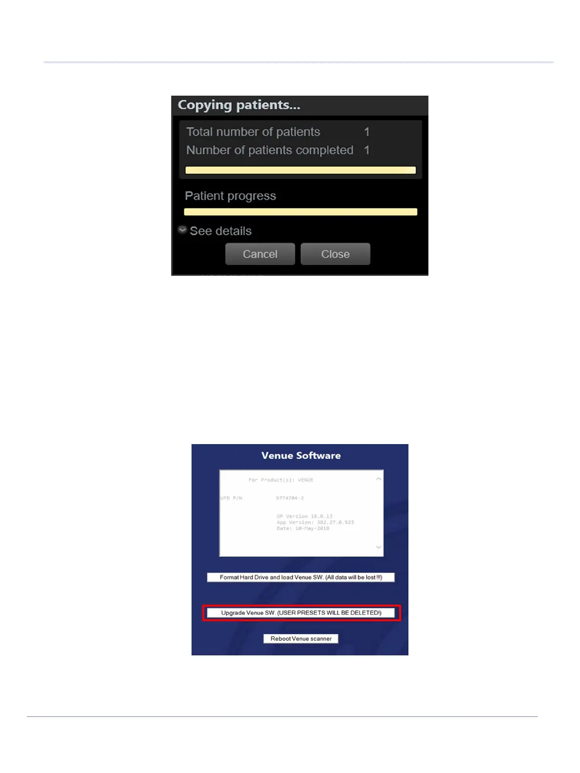 4.) Select Upgrade Venue SW to install software without affecting user data.