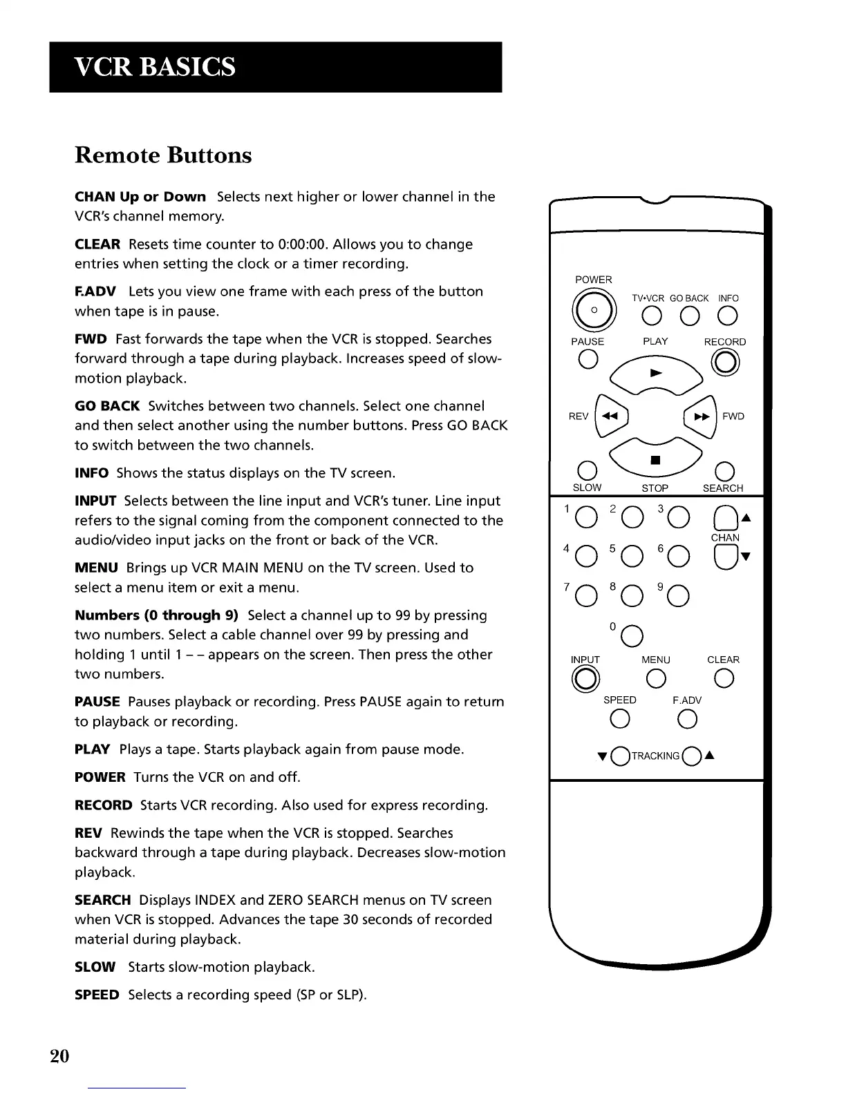 FWD Fast forwards the tape when the VCR is stopped. Searches