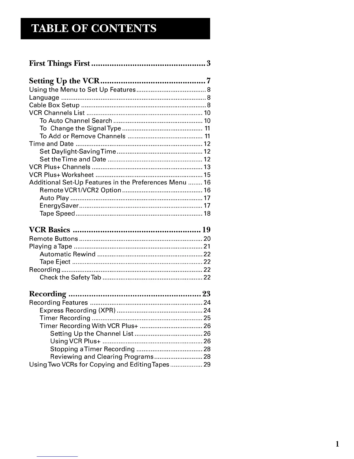 VCR Basics ........................................................ 19