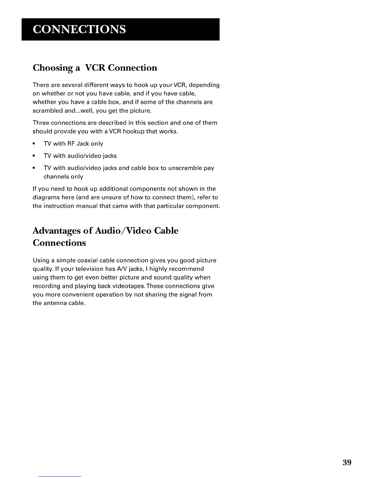 Choosing a VCR Connection