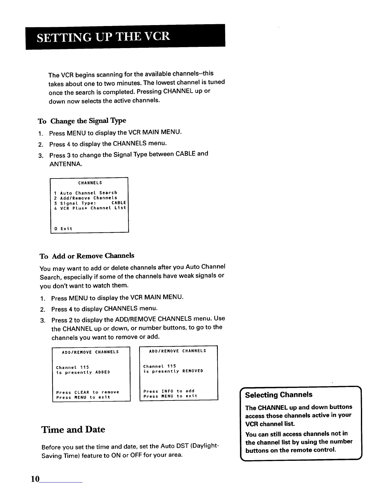3. Press 2 to display the ADD/REMOVE CHANNELS menu. Use