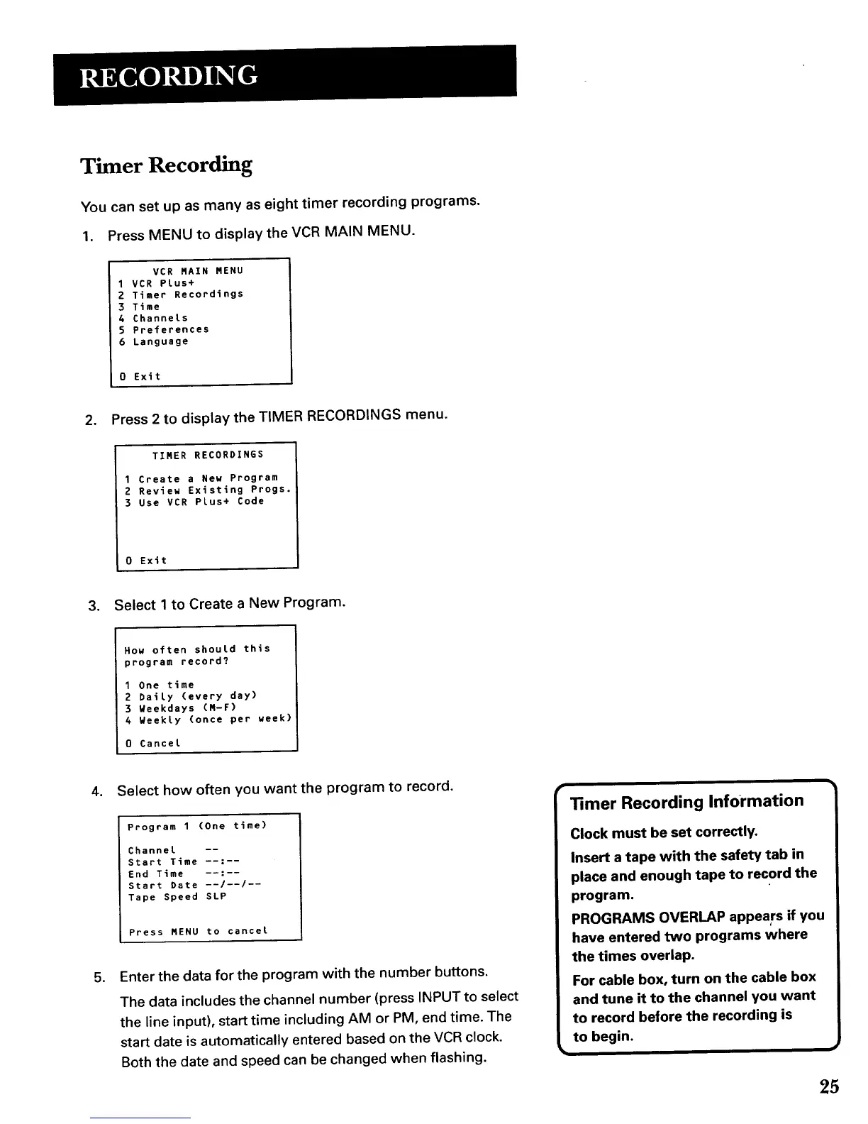 You can set up as many as eight timer recording programs.