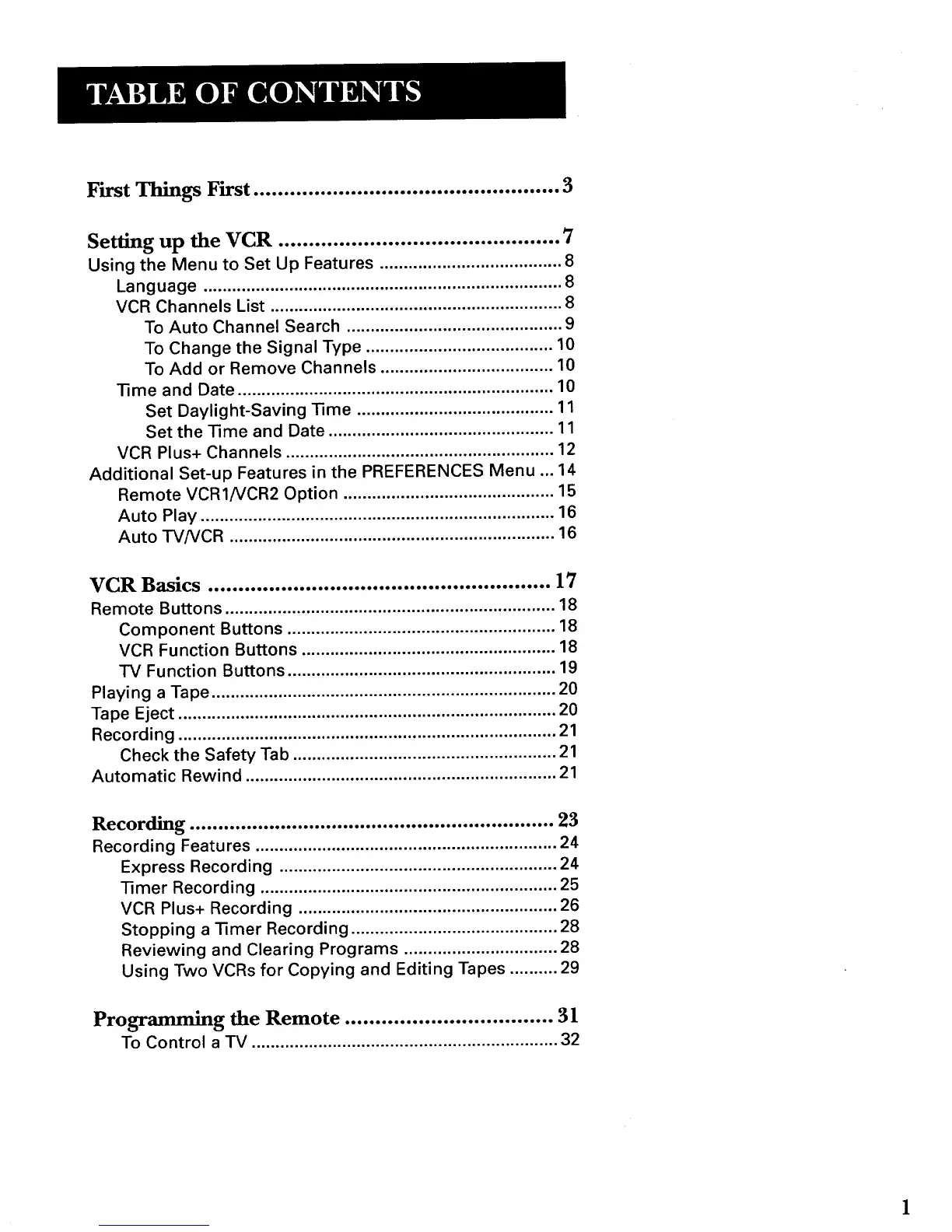 VCR Basics ........................................................ 17