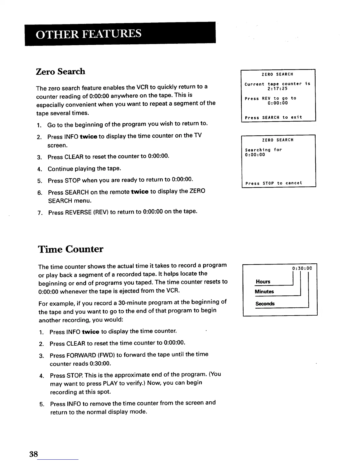 The zero search feature enables the VCR to quickly return to a