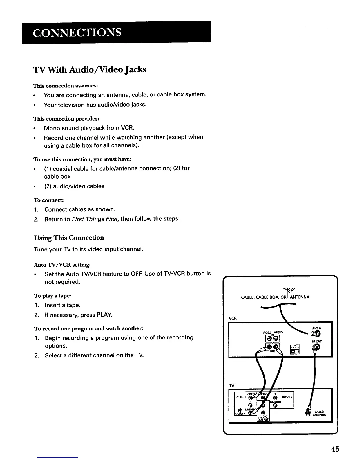 • Set the Auto TV/VCR feature to OFF. Use of TV-VCR button is