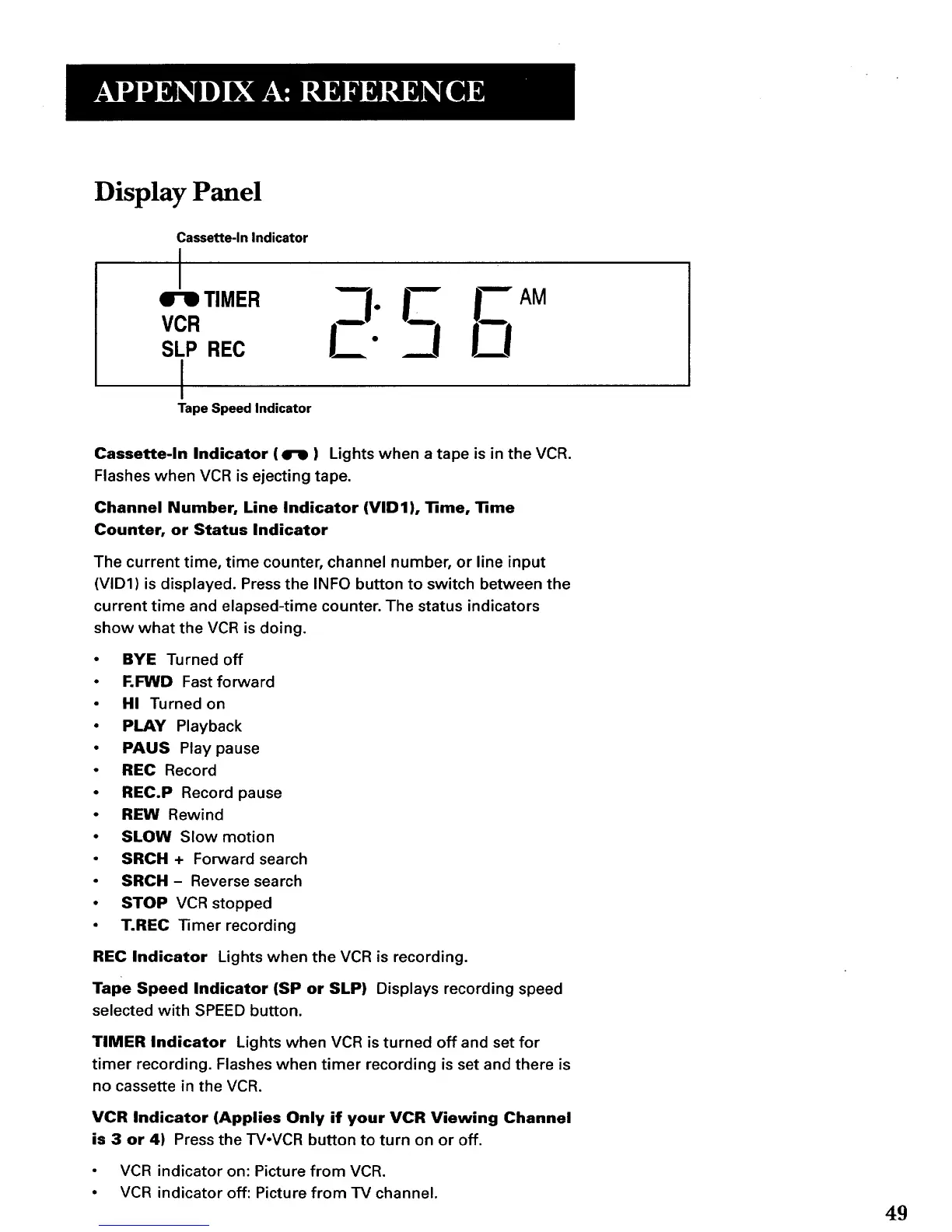 Cassette-In Indicator (el) Lights when a tape is in the VCR.