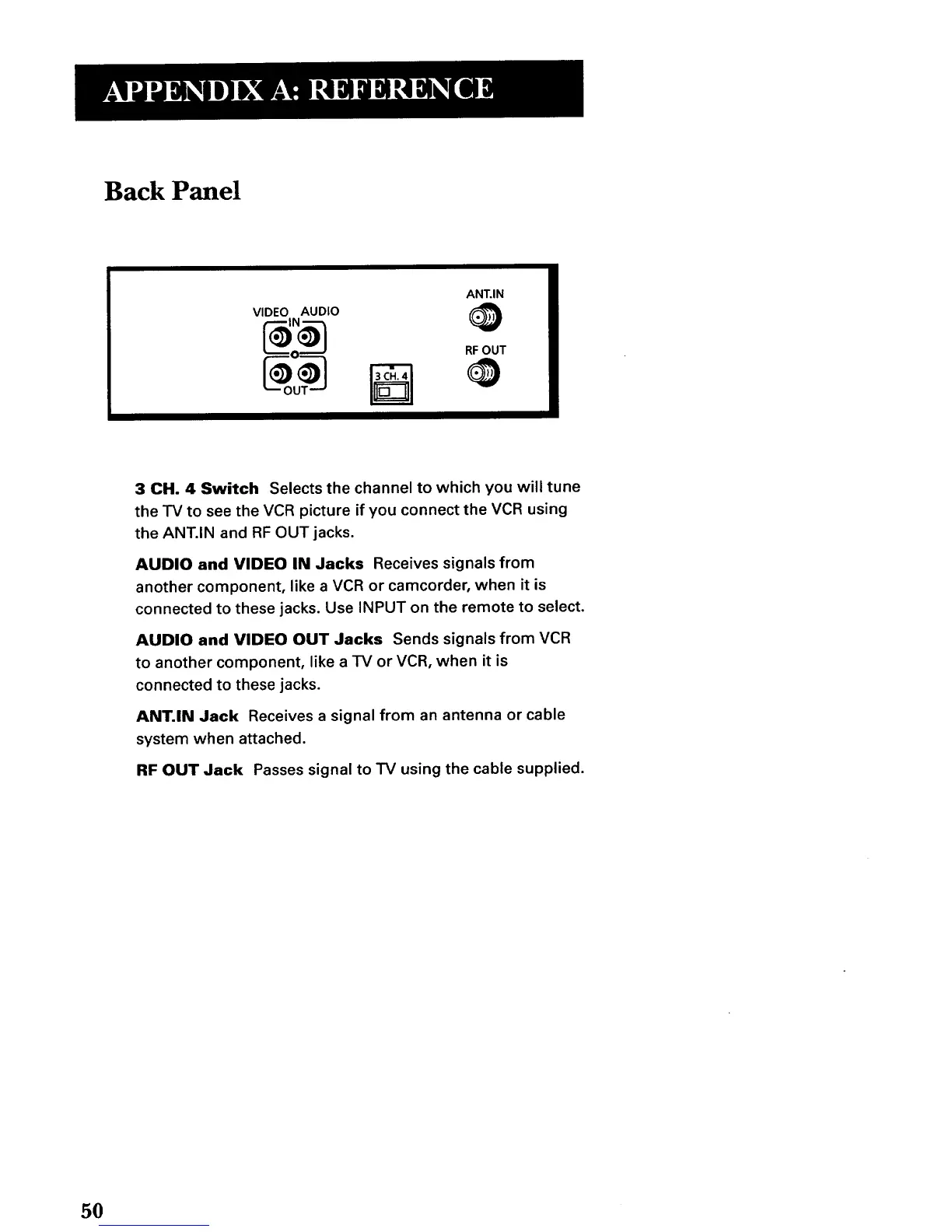 AUDIO and VIDEO OUT Jacks Sends signals from VCR