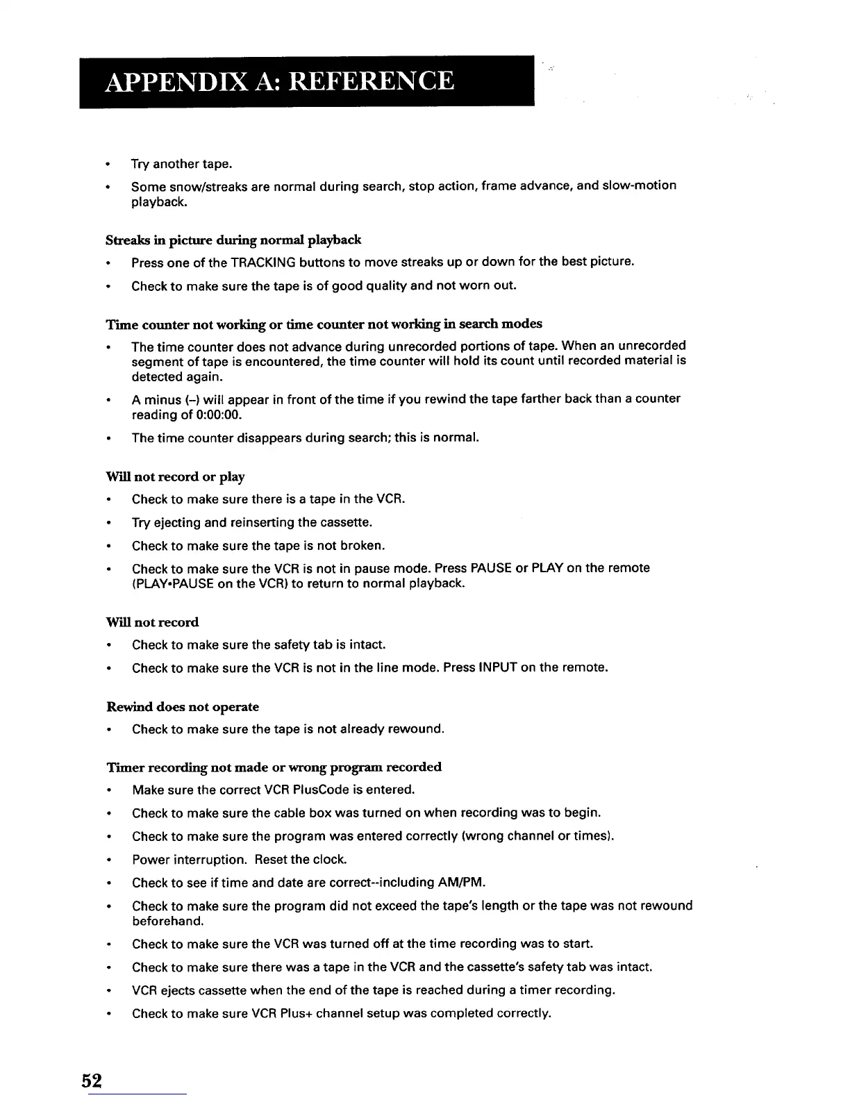 • Check to make sure there was a tape in the VCR and the cassette's safety tab was intact.