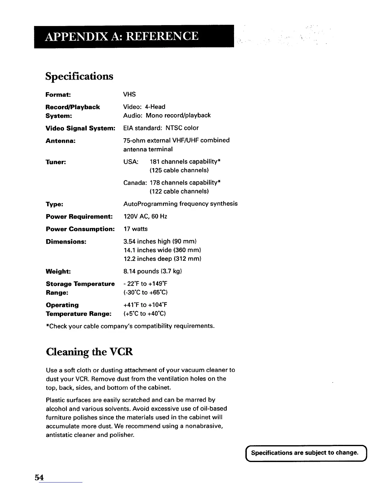 dust your VCR. Remove dust from the ventilation holes on the