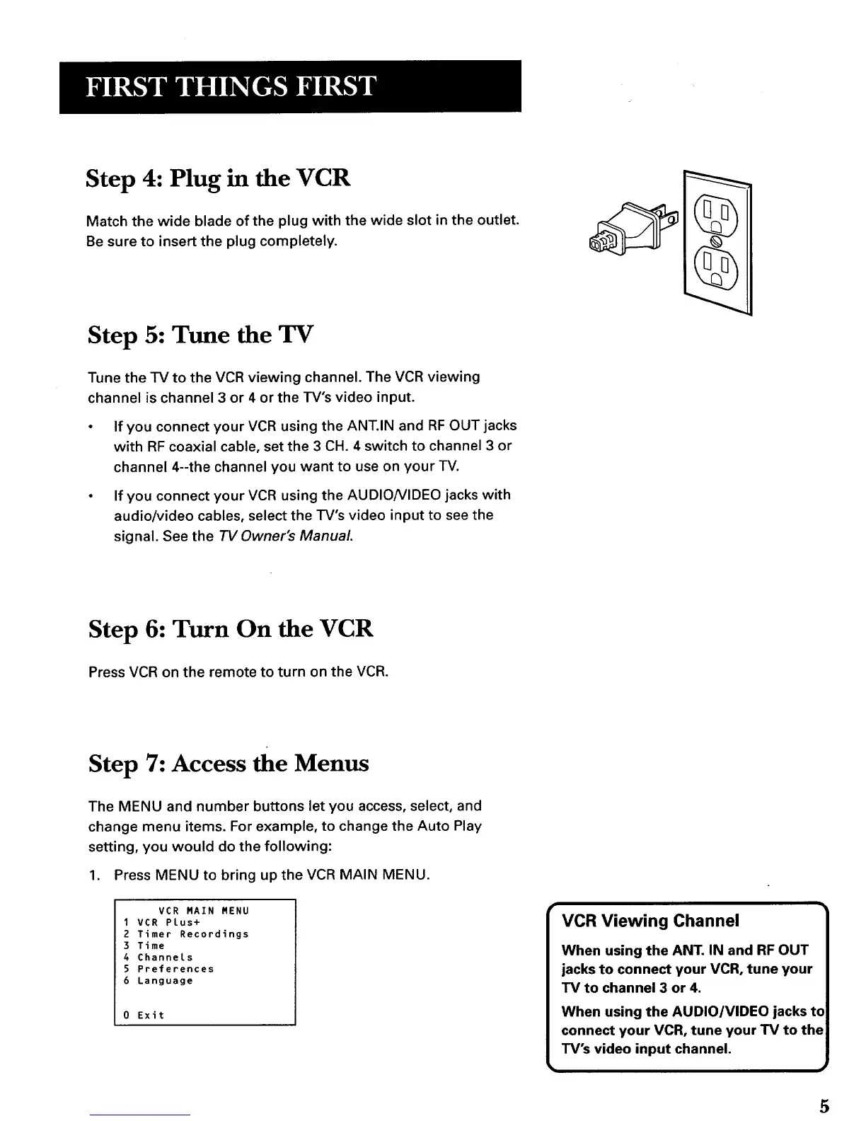 jacks to connect your VCR, tune your