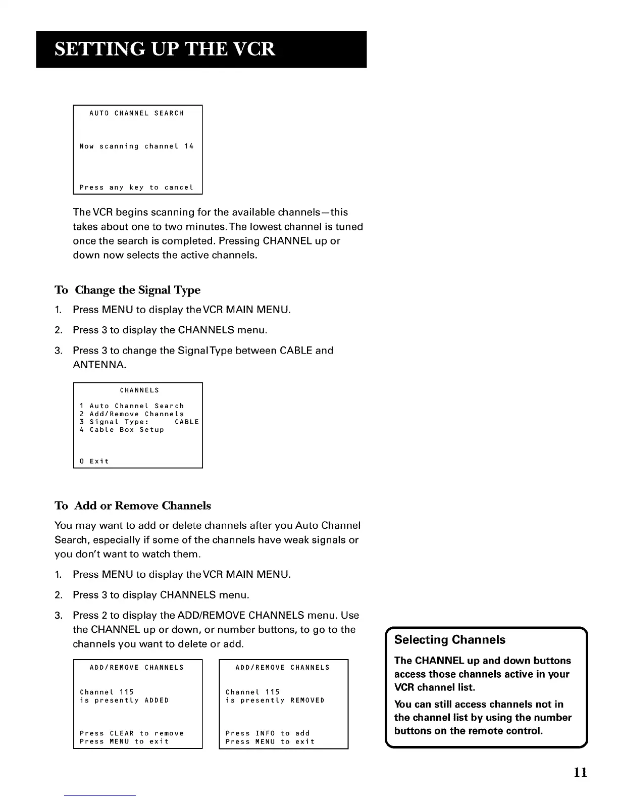 Press 2 to display the ADD/REMOVE CHANNELS menu. Use