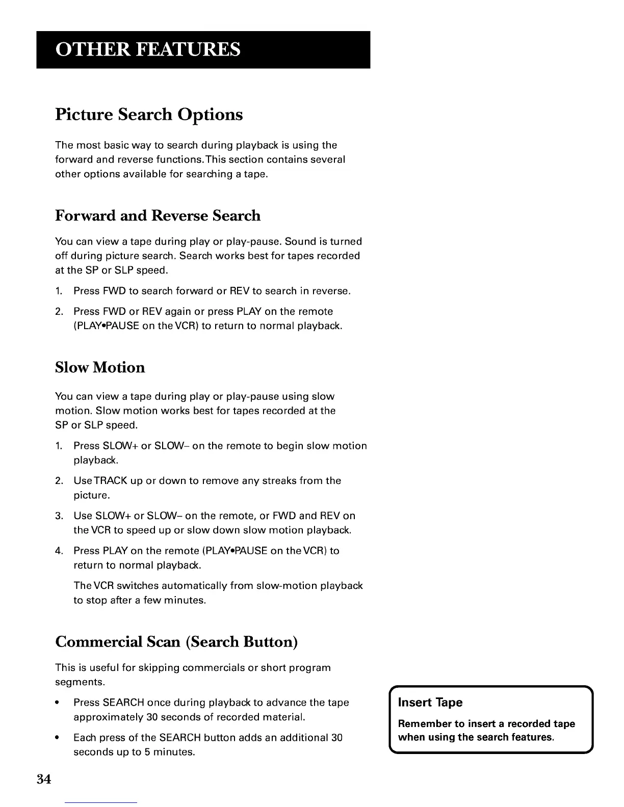 off during picture search. Search works best for tapes recorded