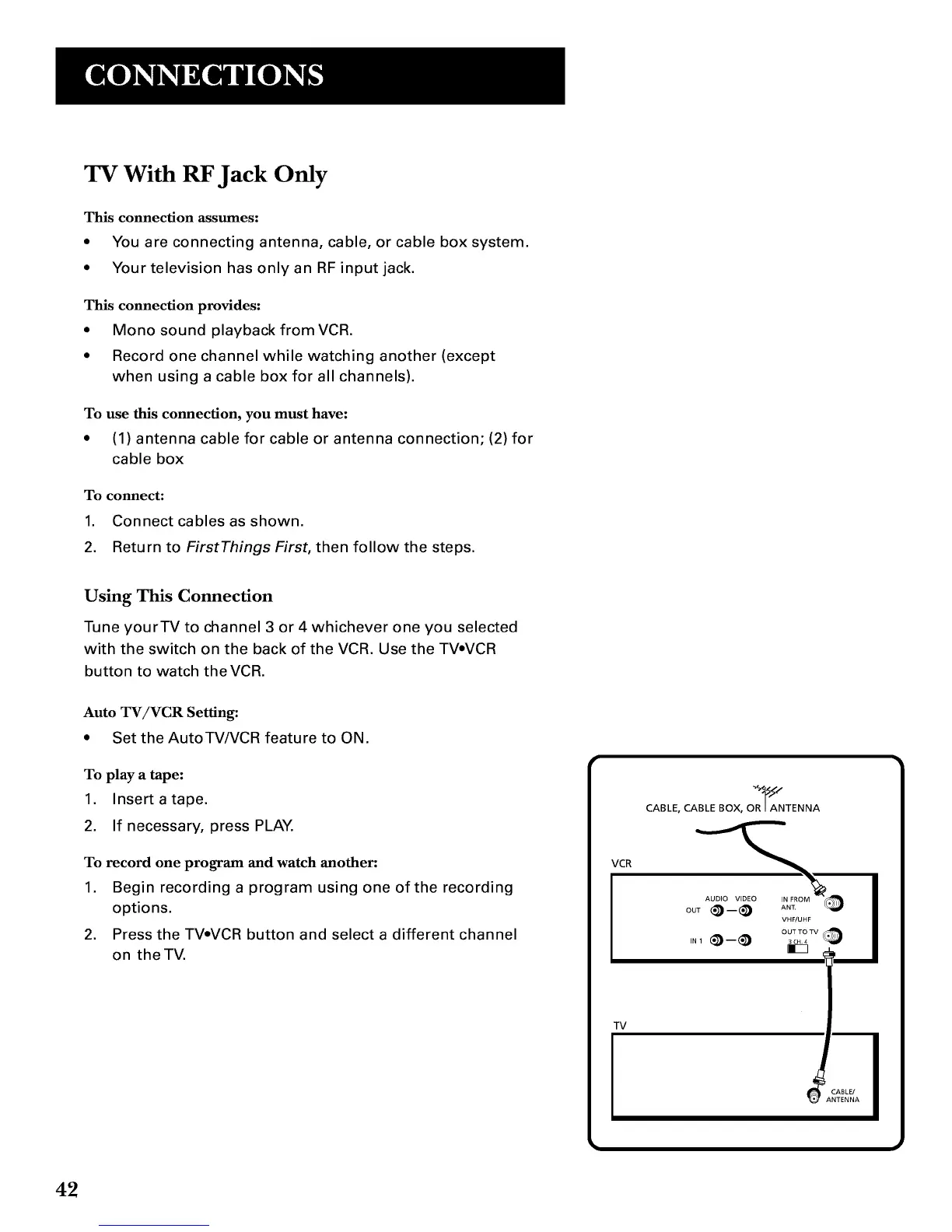 with the switch on the back of the VCR. Use the TVoVCR