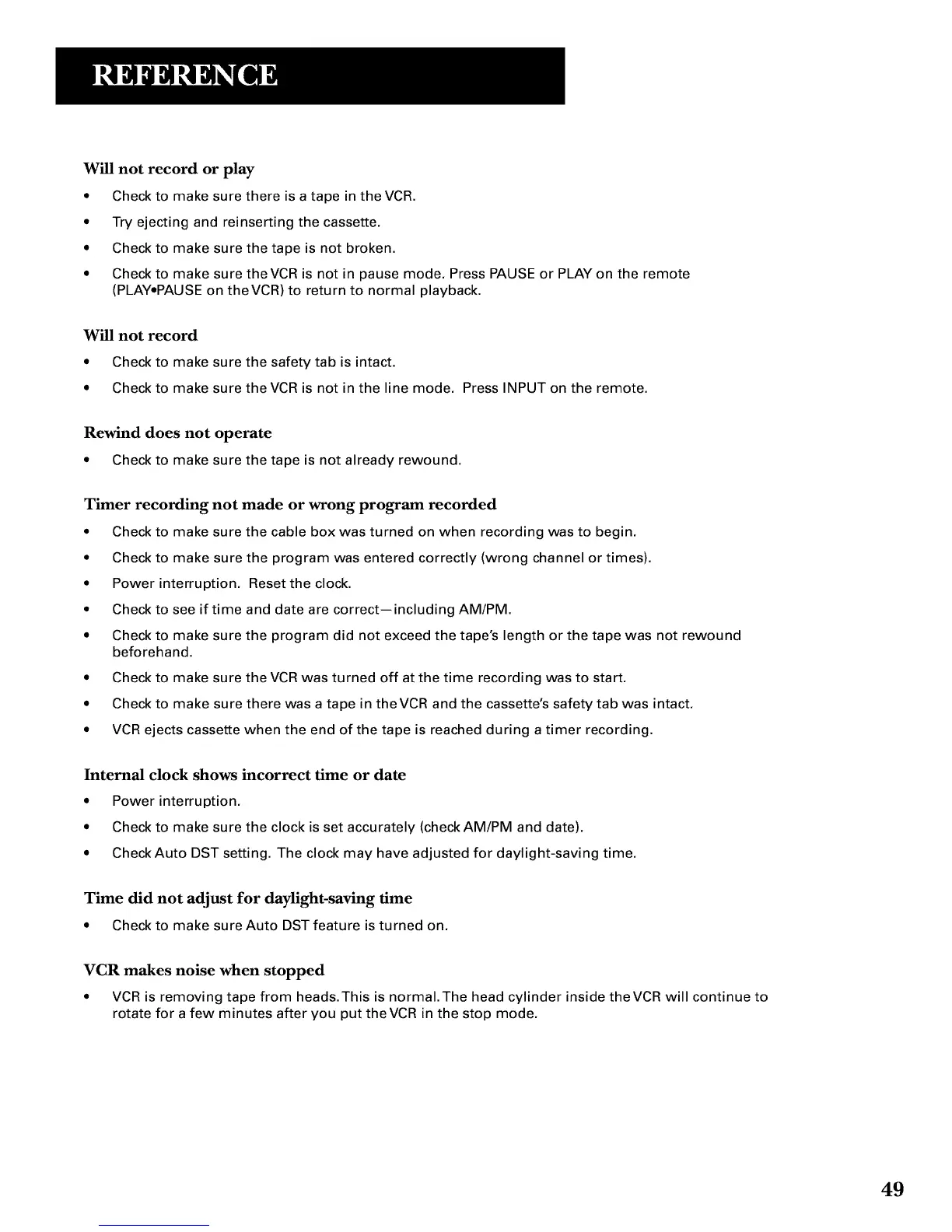 * Check to make sure there was a tape in the VCR and the cassette's safety tab was intact.