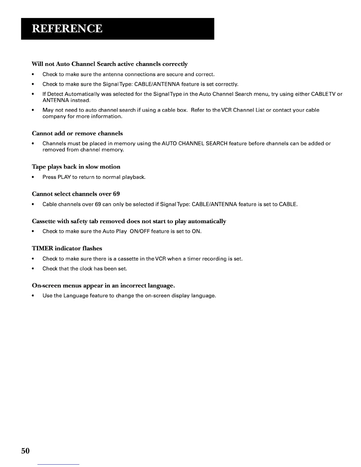 * Cable channels over 69 can only be selected if SignalType: CABLE/ANTENNA feature is set to CABLE.