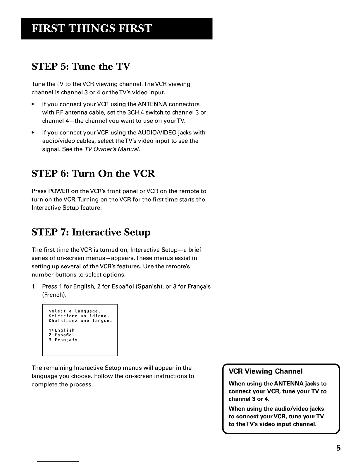 Tune theTV to the VCR viewing channel. The VCR viewing