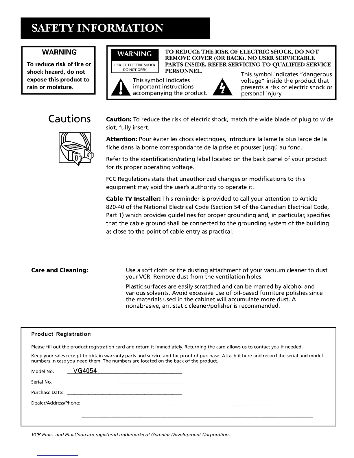 VCR Plus+ and PlusCode are registered trademarks of Gemstar Development Corporation.