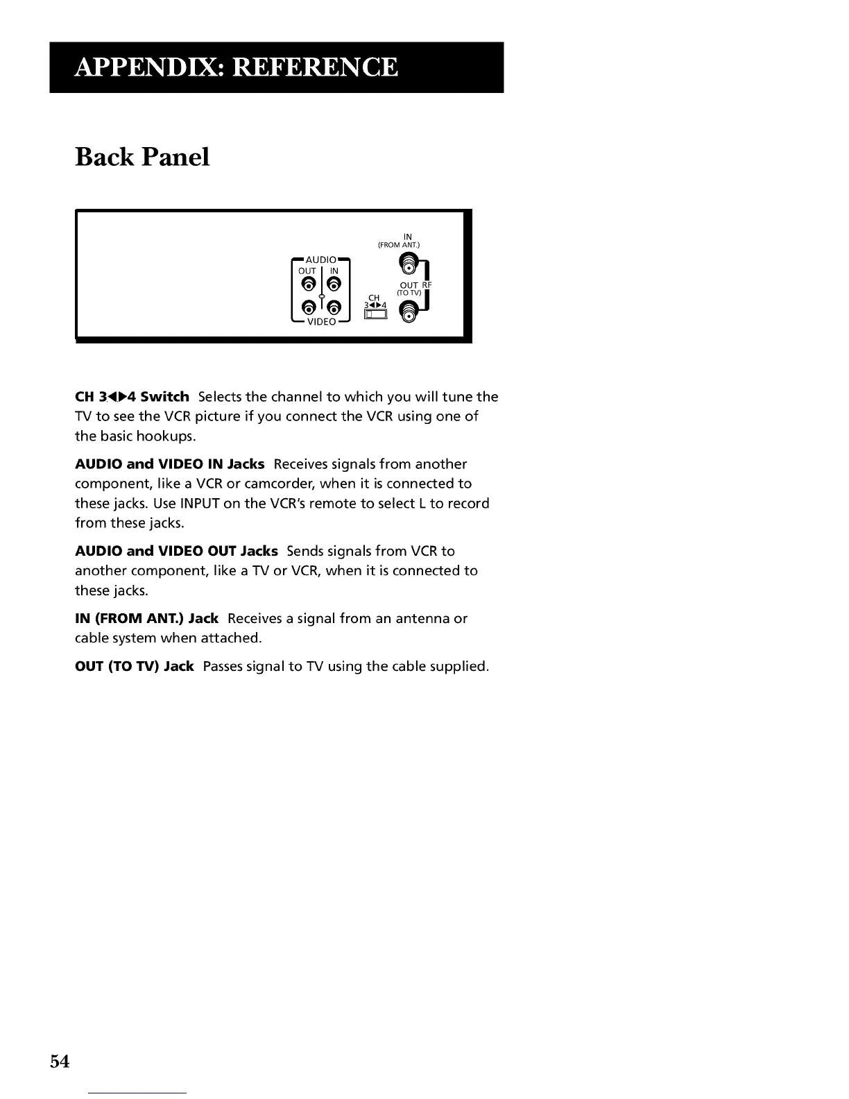 AUDIO and VIDEO OUT Jacks Sends signals from VCR to
