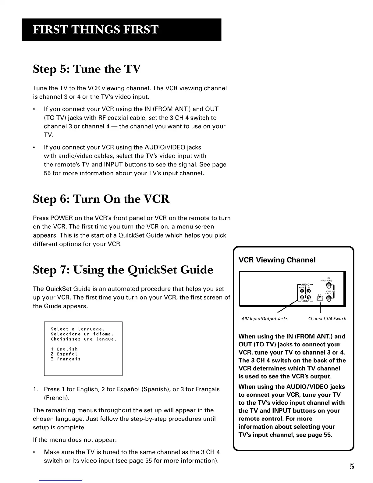 VCR, tune your TV to channel 3 or 4.