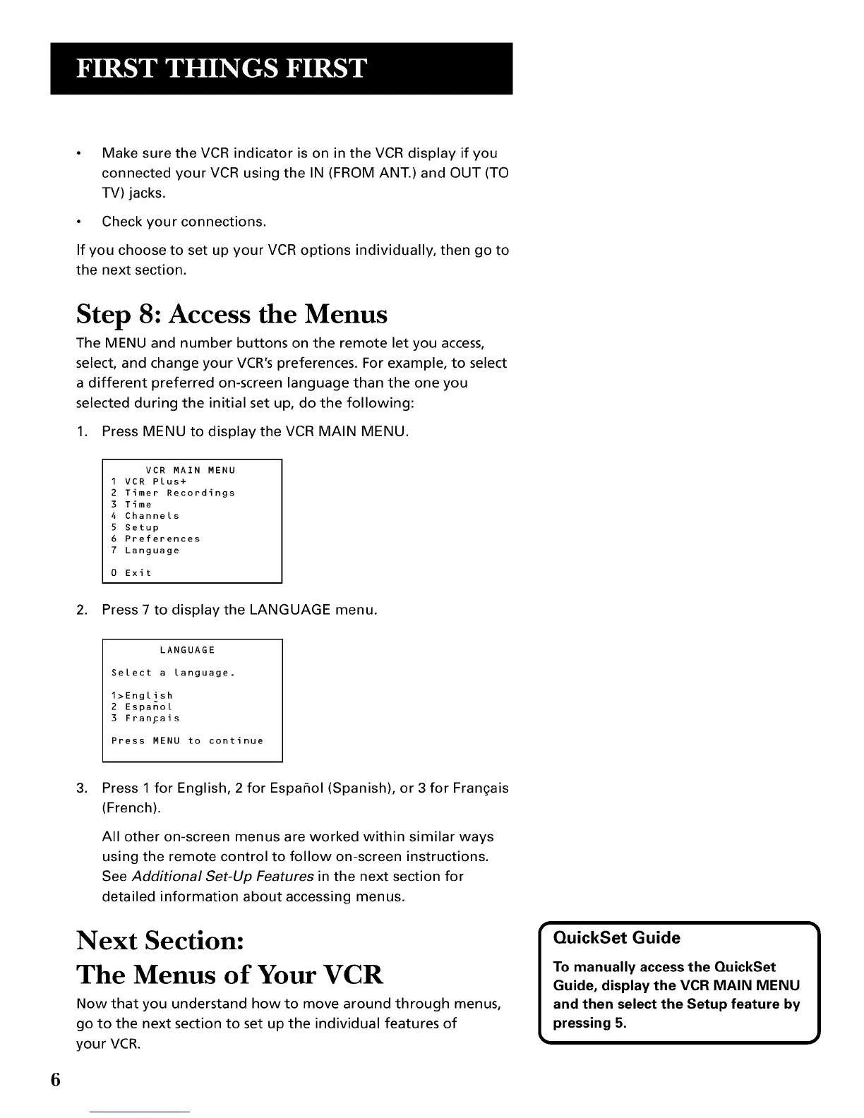 The Menus of Your VCR