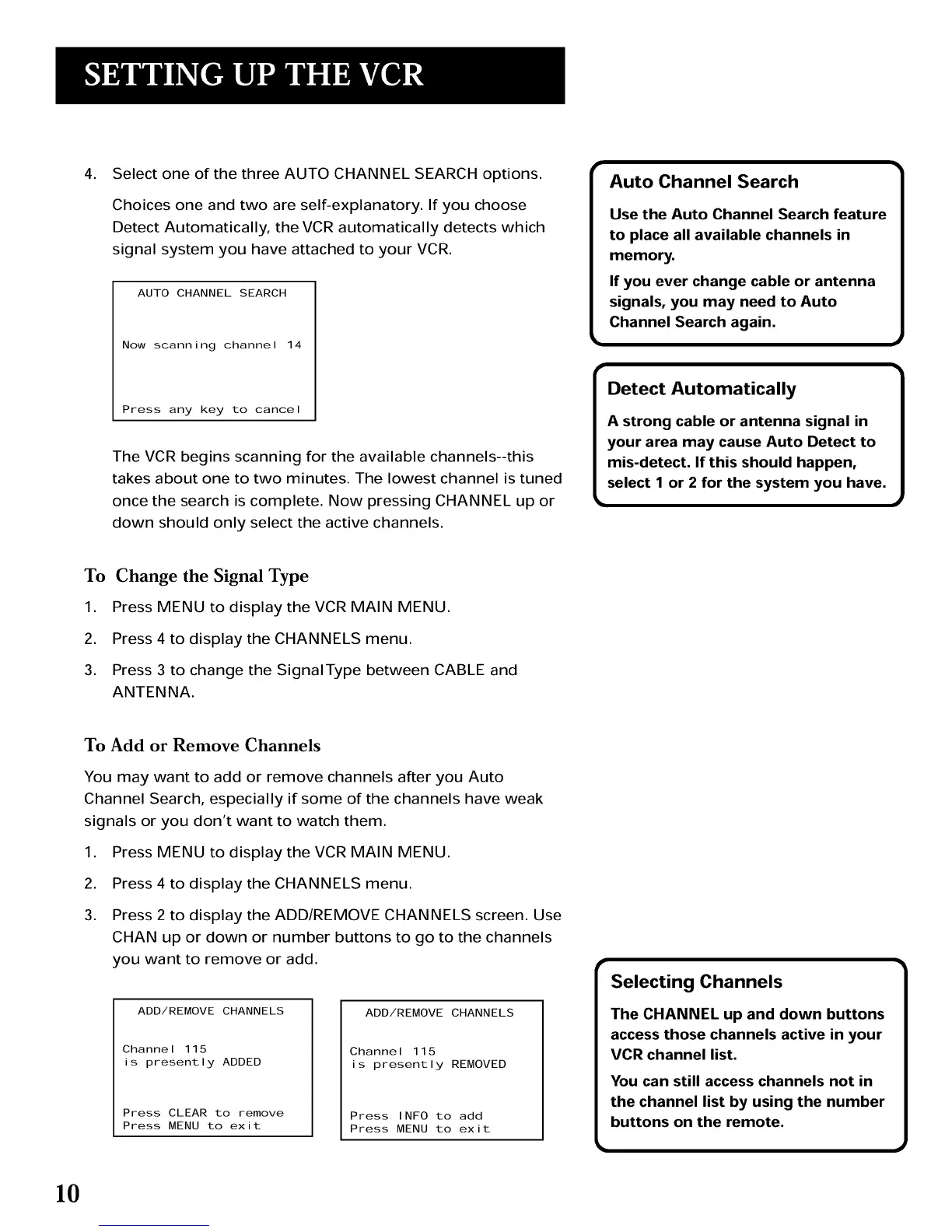 Press 2 to display the ADD/REMOVE CHANNELS screen. Use