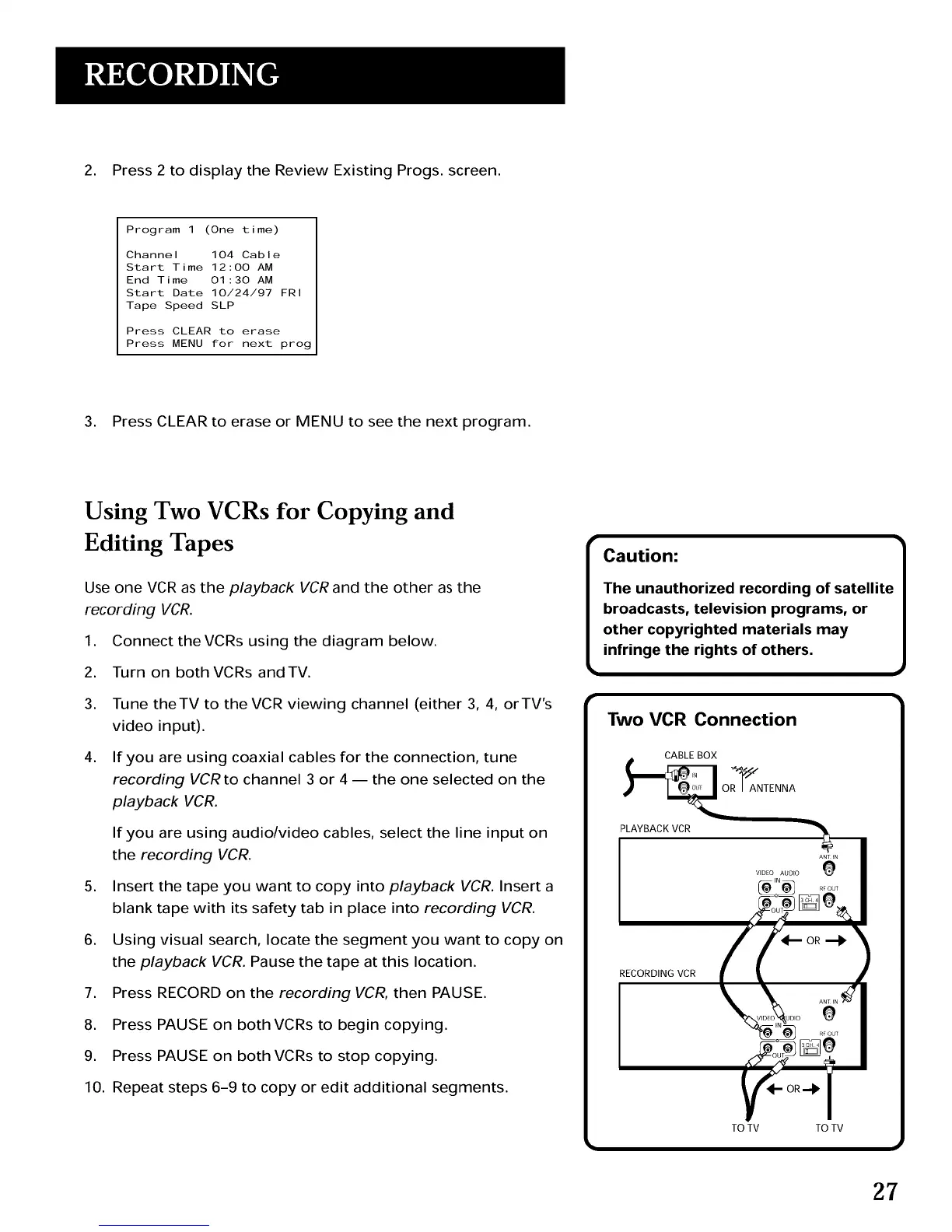 5. Insert the tape you want to copy into playback VCR. Insert a