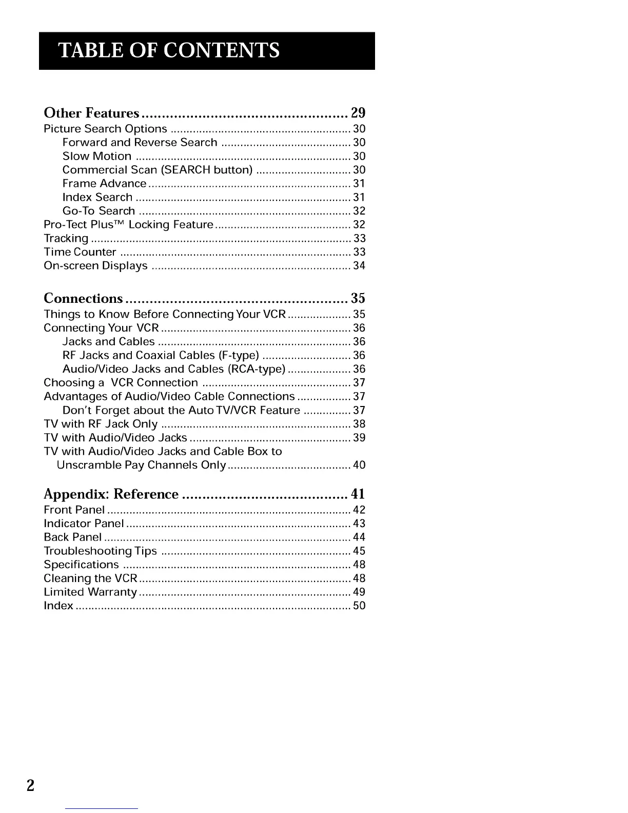 Connecting Your VCR ............................................................ 36