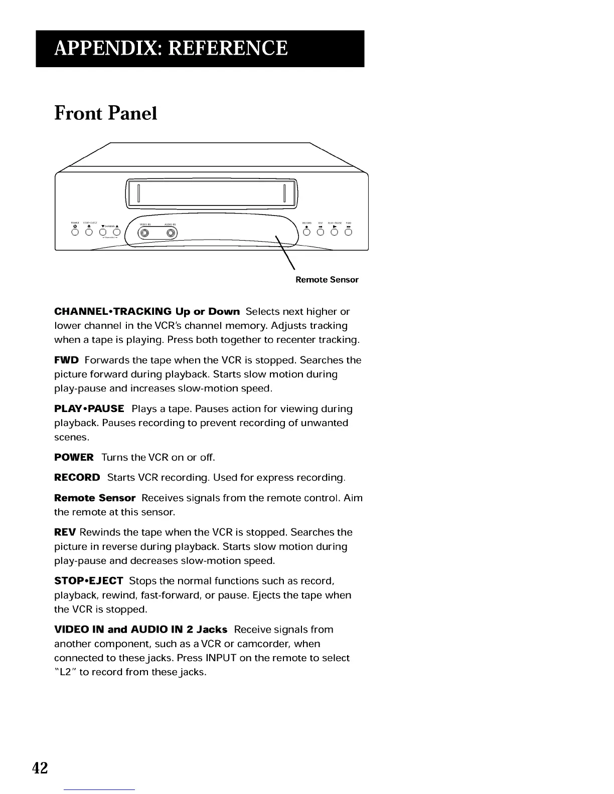 playback, rewind, fast-forward, or pause. EJects the tape when