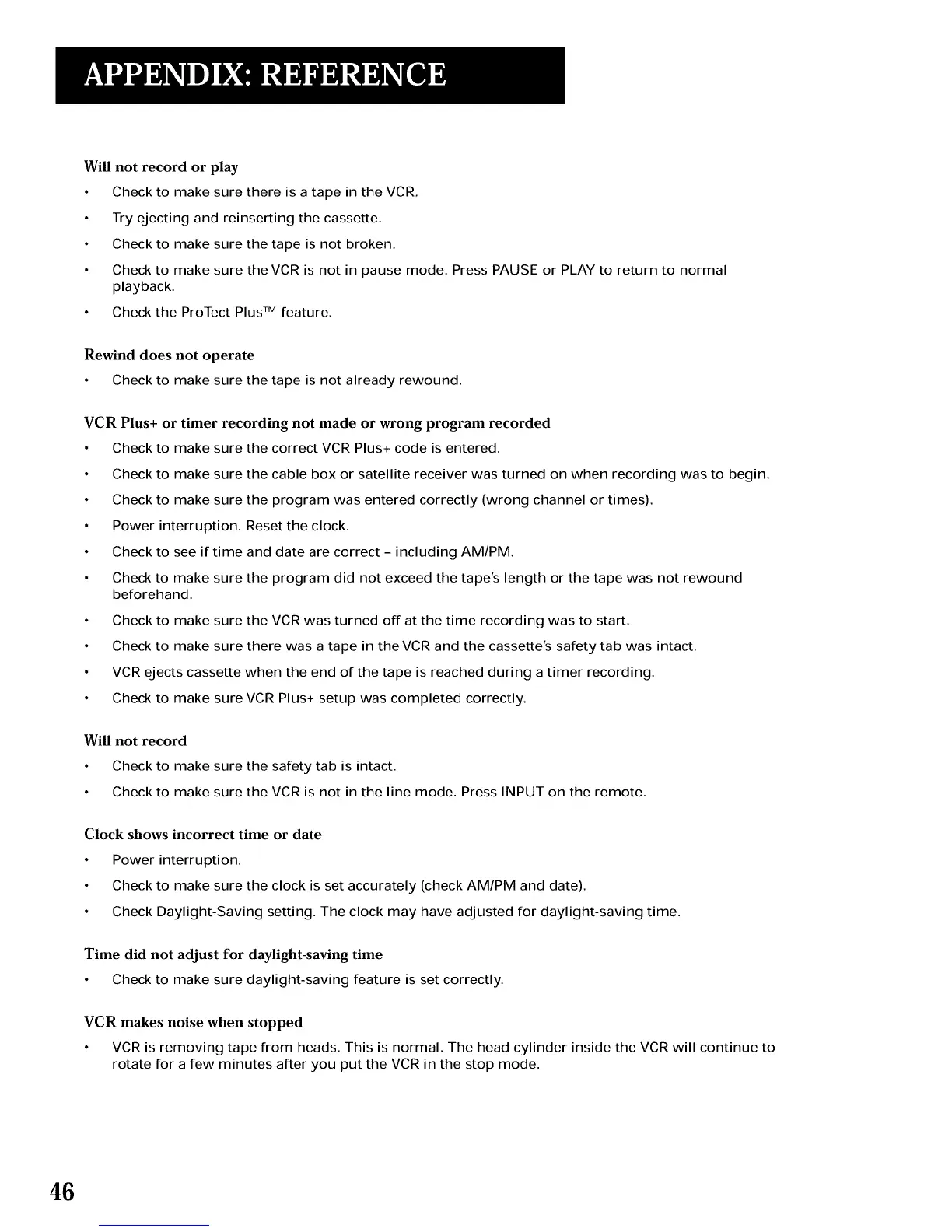 • Check to make sure there was a tape in the VCR and the cassette's safety tab was intact.
