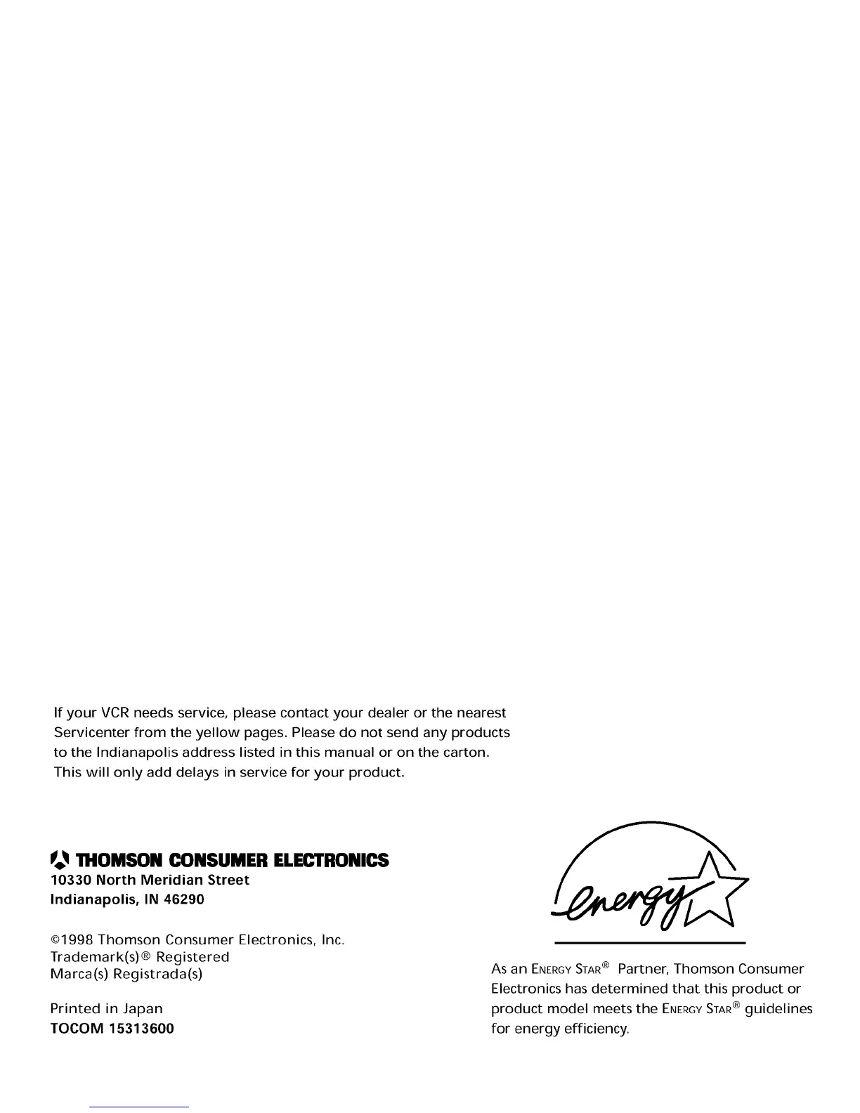 As an ENERGYSTAR ® Partner, Thomson Consumer