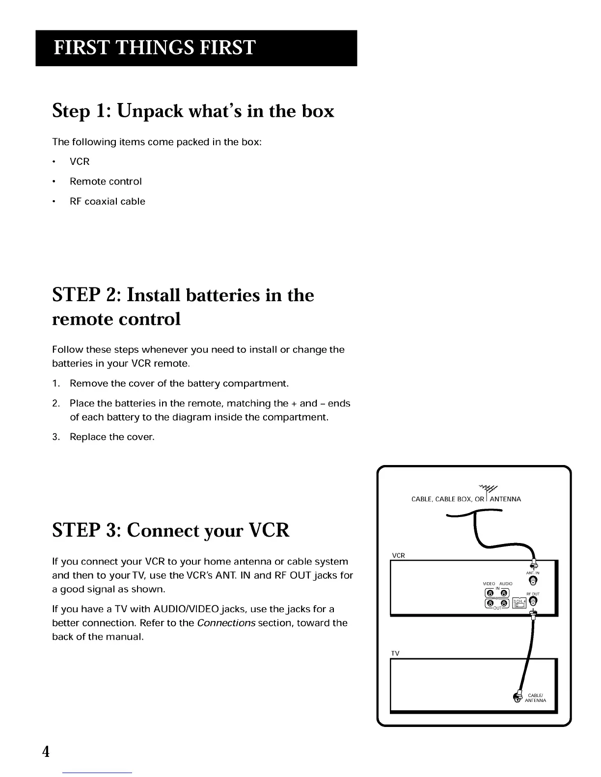 and then to yourTV, use the VCR's ANT. IN and RF OUTjacks for