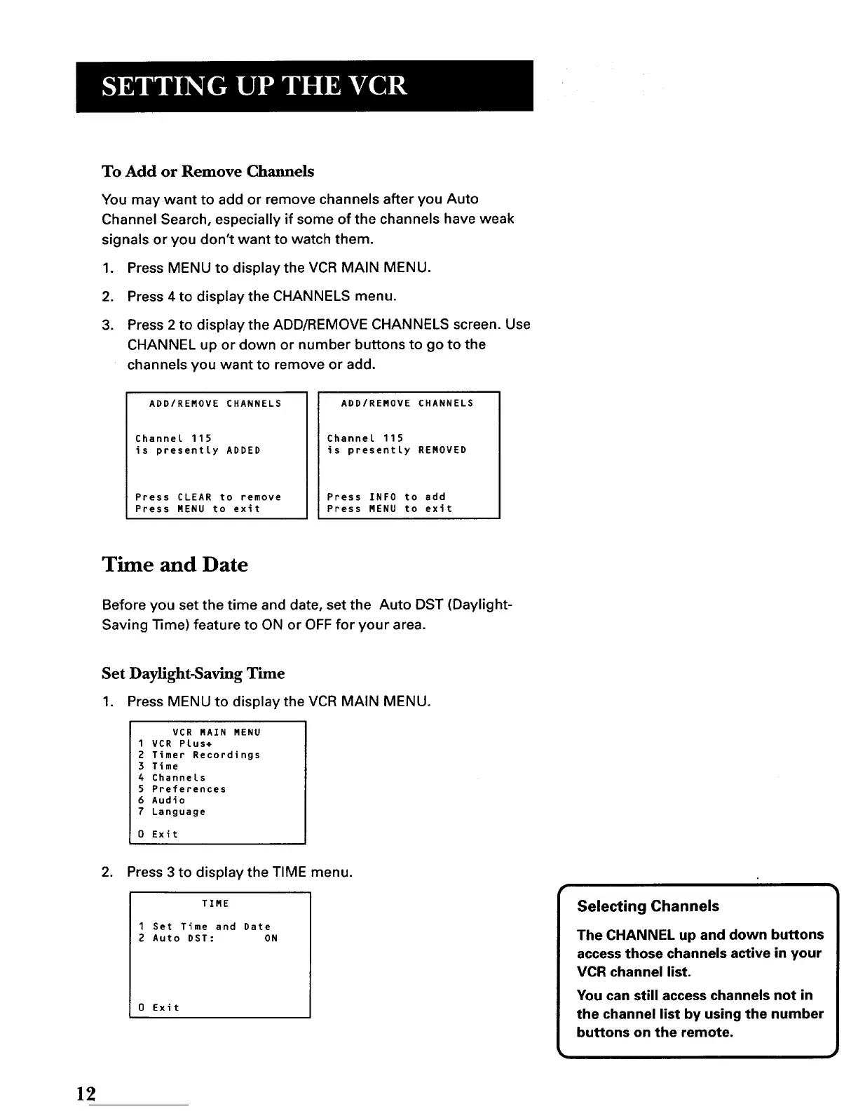 3. Press 2 to display the ADD/REMOVE CHANNELS screen. Use