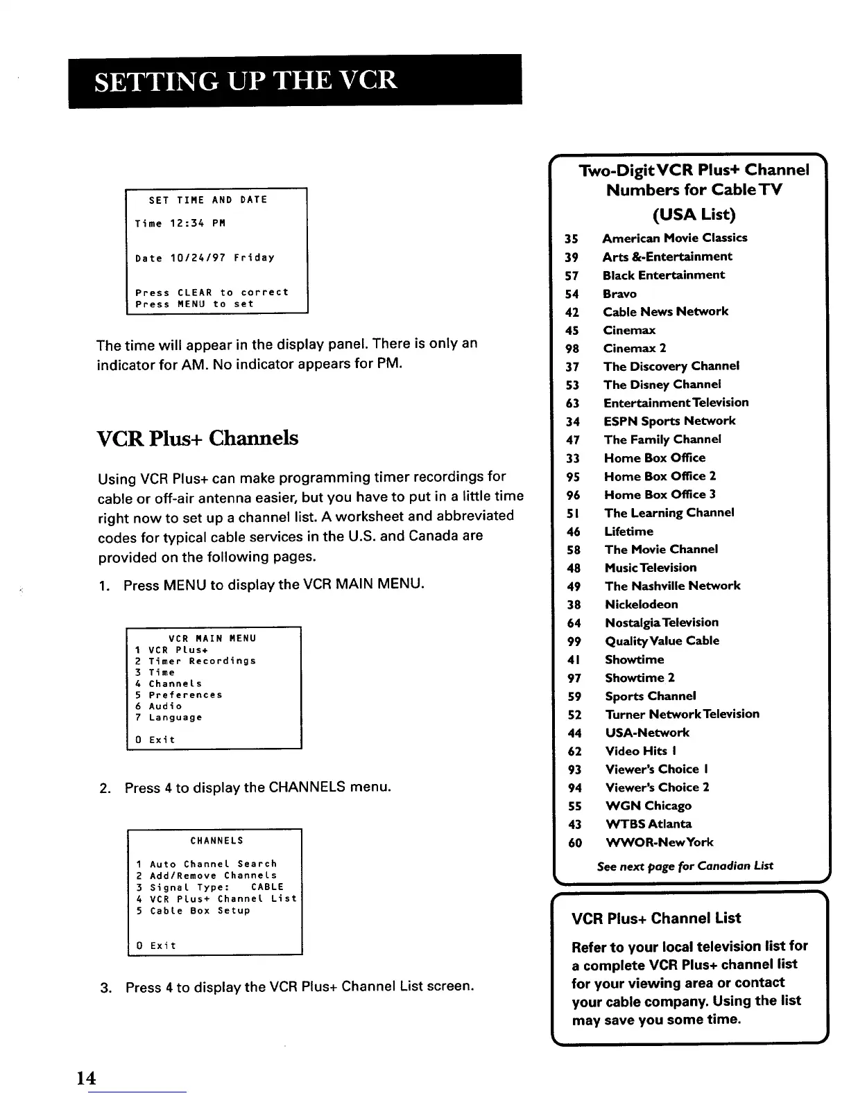 3. Press 4 to display the VCR Plus+ Channel List screen.