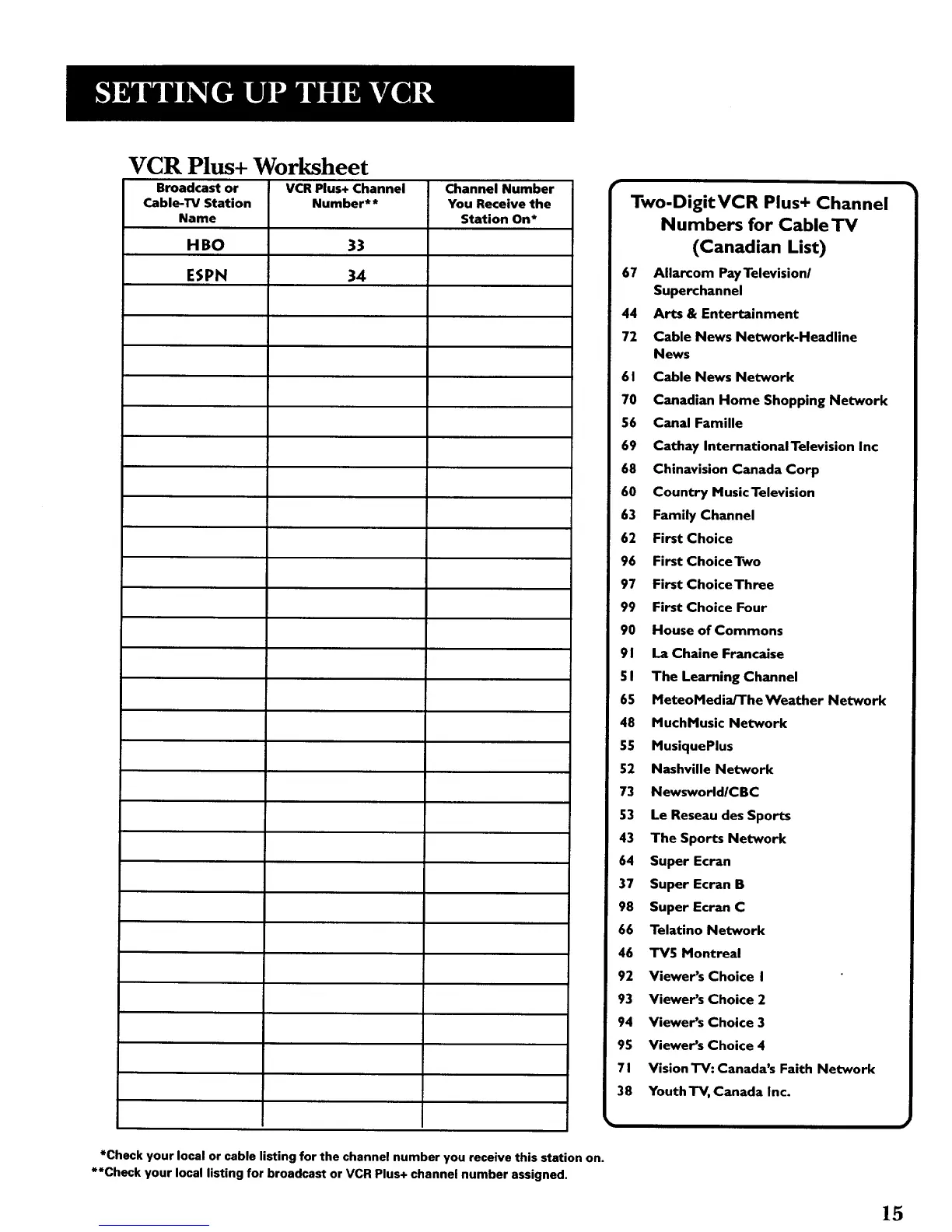 **Check your local listing for broadcast or VCR Plus+ channel number assigned.