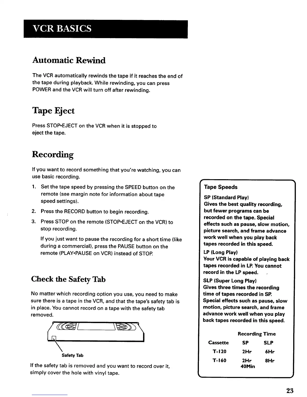 in place. You cannot record on a tape with the safety tab