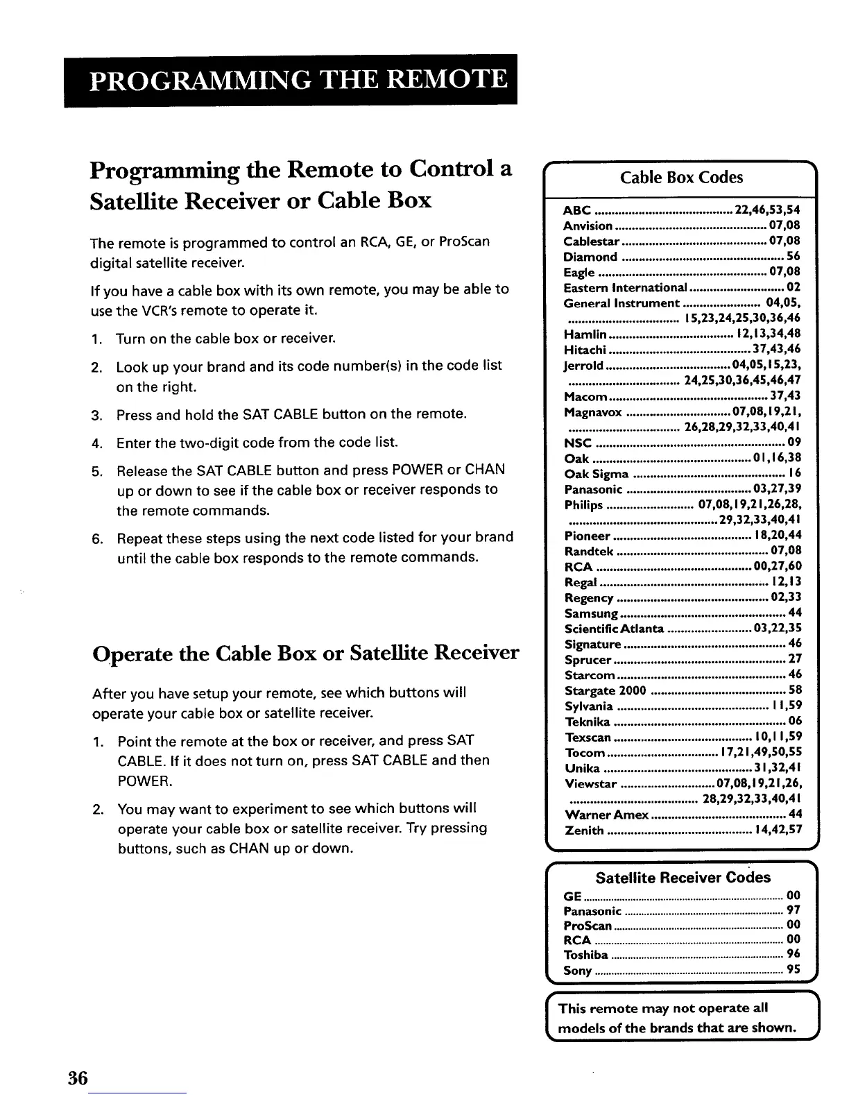 operate your cable box or satellite receiver.